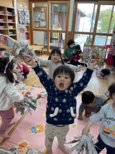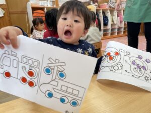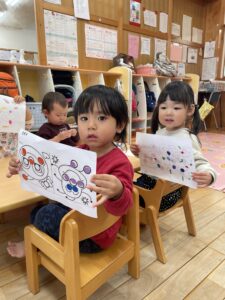 おいすに座ってシール貼りのおべんきょうの後は、身体を動かして遊びました!