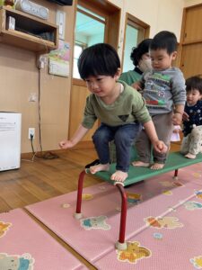 まだ怖くて出来ない子がいたり、先生と手を繋げば出来る子がいたり、1人でジャンプ出来る子がいたりと様々でした☺️