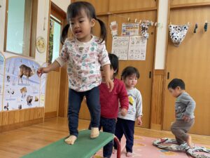 両足ジャンプが上手な子がいたり、ジャンプしている”つもり”な、子どもらしい動きのお友だちがいたり😁♡