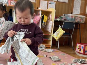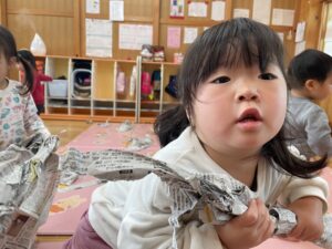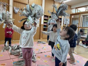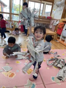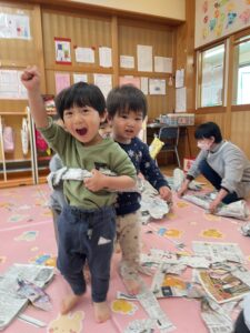 そしてそして、最後は思いっきり新聞紙を破いたり投げたり、ポンポンを作って踊ったり✨