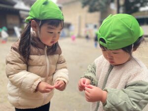 「先生見てみて〜どんぐりに帽子がついてる〜」と見せてくれたり😳