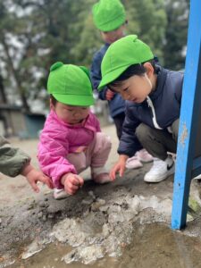冷たい氷🧊も見つけ、「冷た〜い」と楽しく遊びしまた🚶