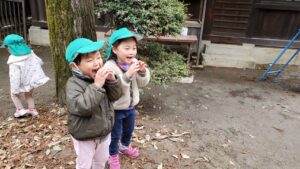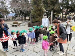 今日は1歳児と2歳児で神社へお散歩に行きました!⛩️