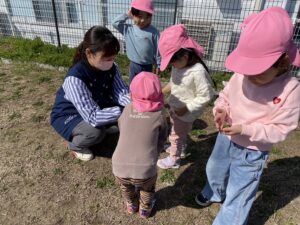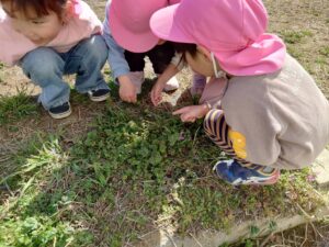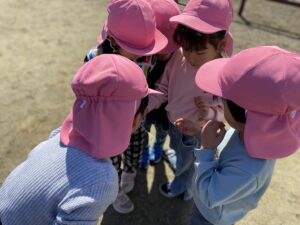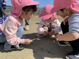 手のひらや木の棒に乗せてじっくり観察したり、見つけたてんとう虫に名前をつけて可愛がったりと、興味津々な子どもたちでした😊