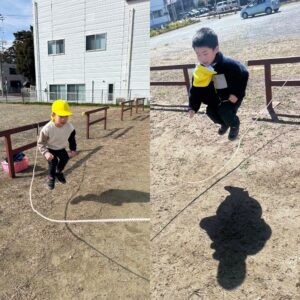 縄を回したり、波のようにしたり、一人一人に合わせたペース・跳び方で楽しんでいます❗️
