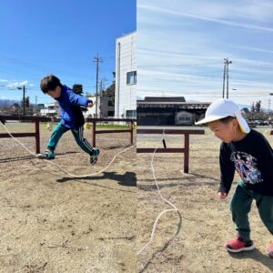 縄を回したり、波のようにしたり、一人一人に合わせたペース・跳び方で楽しんでいます❗️
