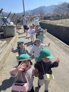 もも組さんに向けて、初めて誘導ロープを使わずにお友達と手を繋いで行きました✨