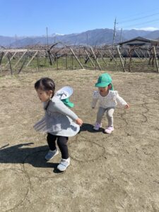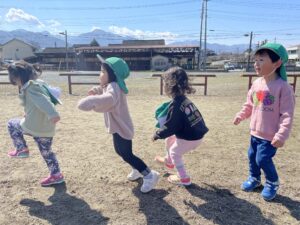 最後は第2グラウンドへ行き、追いかけっこをしたりケンケンパなどをして楽しく遊べました💕