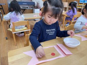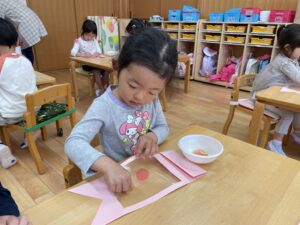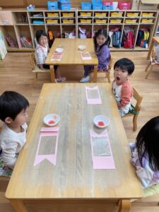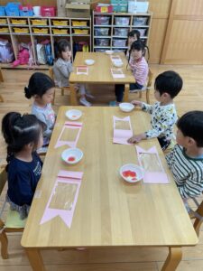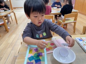 うろこの貼り方も様々で、同じ色を並べる子や一箇所に貼る子など色々な🎏が出来ました!