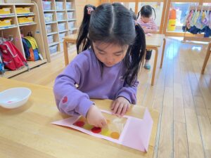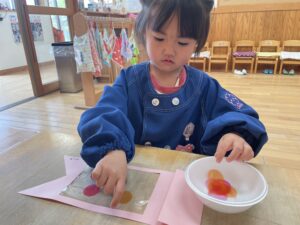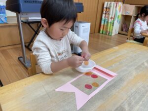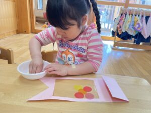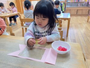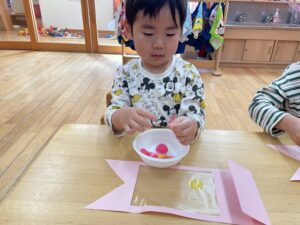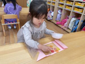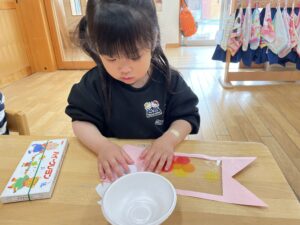 折り紙を見ながら「きれーい」と目をキラキラさせていました😊