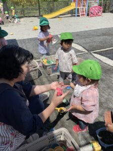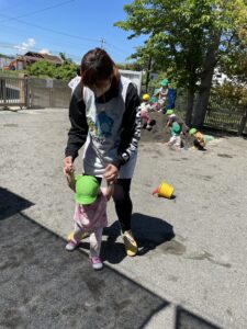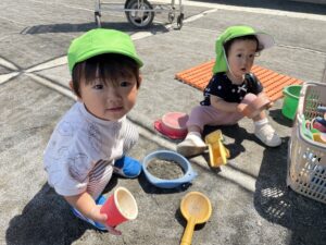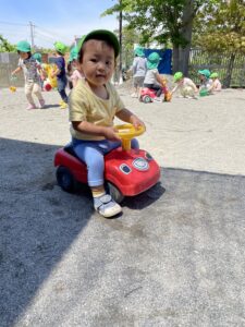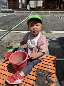 水分補給をしながら天気が良い日はお外遊びを楽しんでいます✨キラキラした目で伸び伸び遊ぶ姿が沢山見られて嬉しい日々です!これからも楽しんで過ごしていきたいと思います🌼(新海)