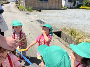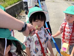 途中で園長先生に”のびる”の茎の匂いを嗅がせてもらうと…